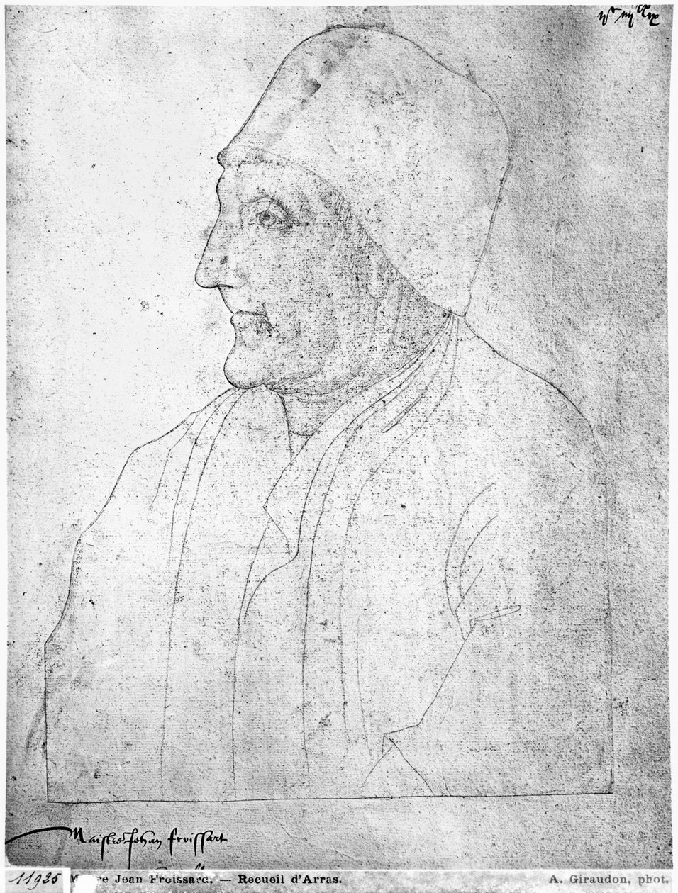 Ms 266 fol.278 Maitre Jean Froissart (1333-140001) aus 'The Recueil d'Arras'(Ms 266 fol.278 Maitre Jean Froissart (1333-140001) from 'The Recueil d'Arras' (red chalk on paper) )Flemish School |