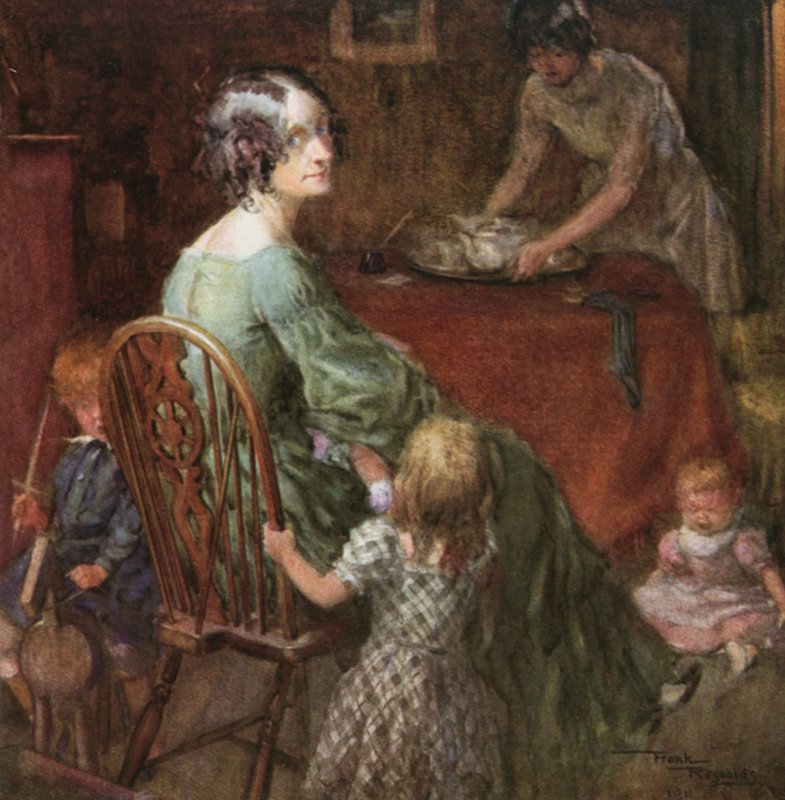 kunst · reynolds frank (1876-1953) · vereinigtes königreich · europa · illustrator · literatur · englisch · familie · mrs. micawber · david copperfield · charles dickens · Private Collection / Bridgeman Images · / Look and Learn