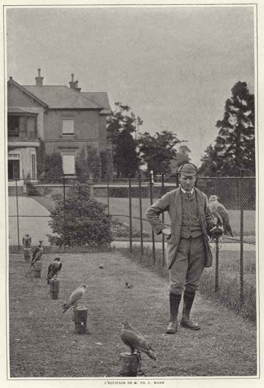 figaro illustre · jahrhundert · old hawking club · falknerei · menschen · männer · vereine · falken · moden · kleidung · tj mann · vögel · feilschen · falkner · Falke · Private Collection / Bridgeman Images · / Look and Learn |