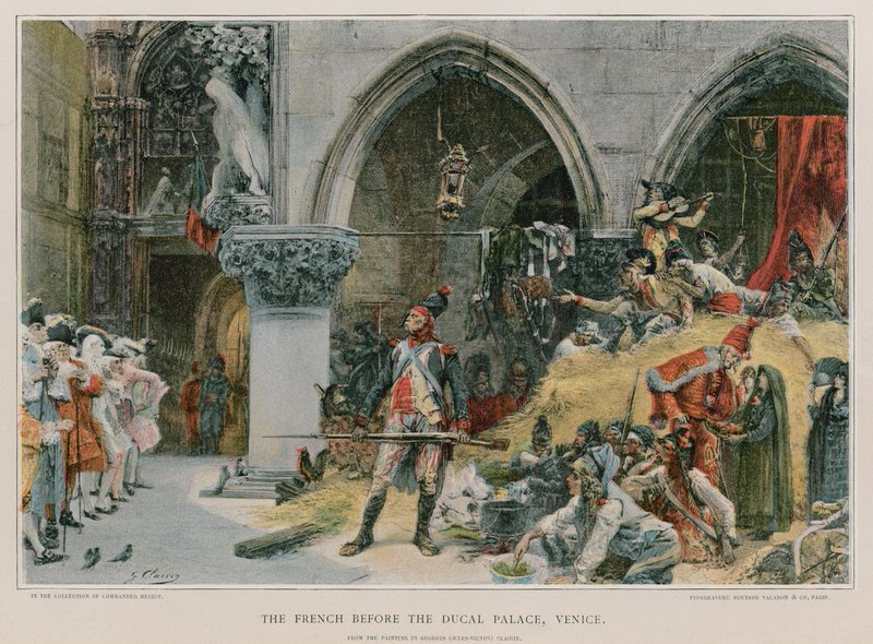 die franzosen · venedig · italien · menschen · moden · kleidung · soldaten · militär · führer · französische armee · die architektur · waffen · jahrhundert · uniformen · herzogspalast · Dogenpalast · Private Collection / Bridgeman Images · / Look and Learn |