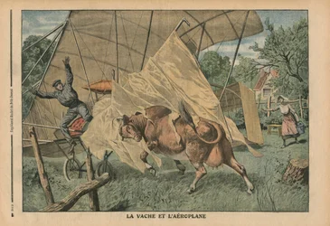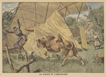 Die Kuh und das Flugzeug, Illustration aus 'Le Petit Journal', Supplement Illustre, 25. September 1910(The cow and the airplane, illustration from 'Le Petit Journal', supplement illustre, 25th September 1910 )French School |