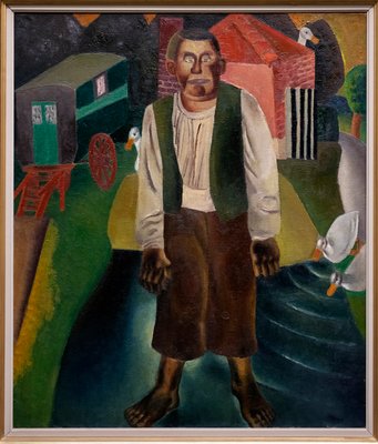 20. jahrhundert · 20. jahrhundert · xx. jahrhundert · xx. jahrhundert · zwanzigstes jahrhundert · c20th · 20 20. xx xx. zwanzigstes jahrhundert · 20 20. xx xx. jahrhundert · 20 20. 20. xx xx · 20er · zwanziger · 1920-1929 · 1920er · 1920er - 20er - 20er · kunst · kunst · kunstwerke · belgien · belgisch · belgier · belgien belgisch · europa · europäisch · landschaft · ländlich · ländliche landschaft · wohnwagen (wohnung) · wohnwagen · wohnung · wohnung · lebensraum · farbe · farbe · farbig · farben · farben · farbig · seen · teich · mühlenteich · loch · lochs · expressionismus · expressionist · kunstbewegung · kunststil · behinderte · behinderung · krüppel · behinderte · behinderte · invalide · gebrechen · mann · männer · männlich · haus · häuser · stadthäuser · stadthaus · heim · armut · arme · prekarität · armut · landschaft · landschaften · bauer · bauern · bauern · landsmann · landwirtschaft · landwirtschaft · landwirtschaft · gemälde · farbe · gemälde · bevölkerung · einwohner · menschen · menschen · porträt · eine person · person · nur eine person · 1 person · alltag · alltag · alltagsszene · alltag · d alltag · alltag · allgemeines · dorf · dörfer · dorf · dorfszene · rustikales dörfchen · stehend · draußen · außenbereich · mzmalerei · psychiatrie · psychiatrische versorgung · psychiatrie · Psychose · Geisteskrankheit · Museum voor Schone Kunsten, Ghent, Belgium / Bridgeman Images