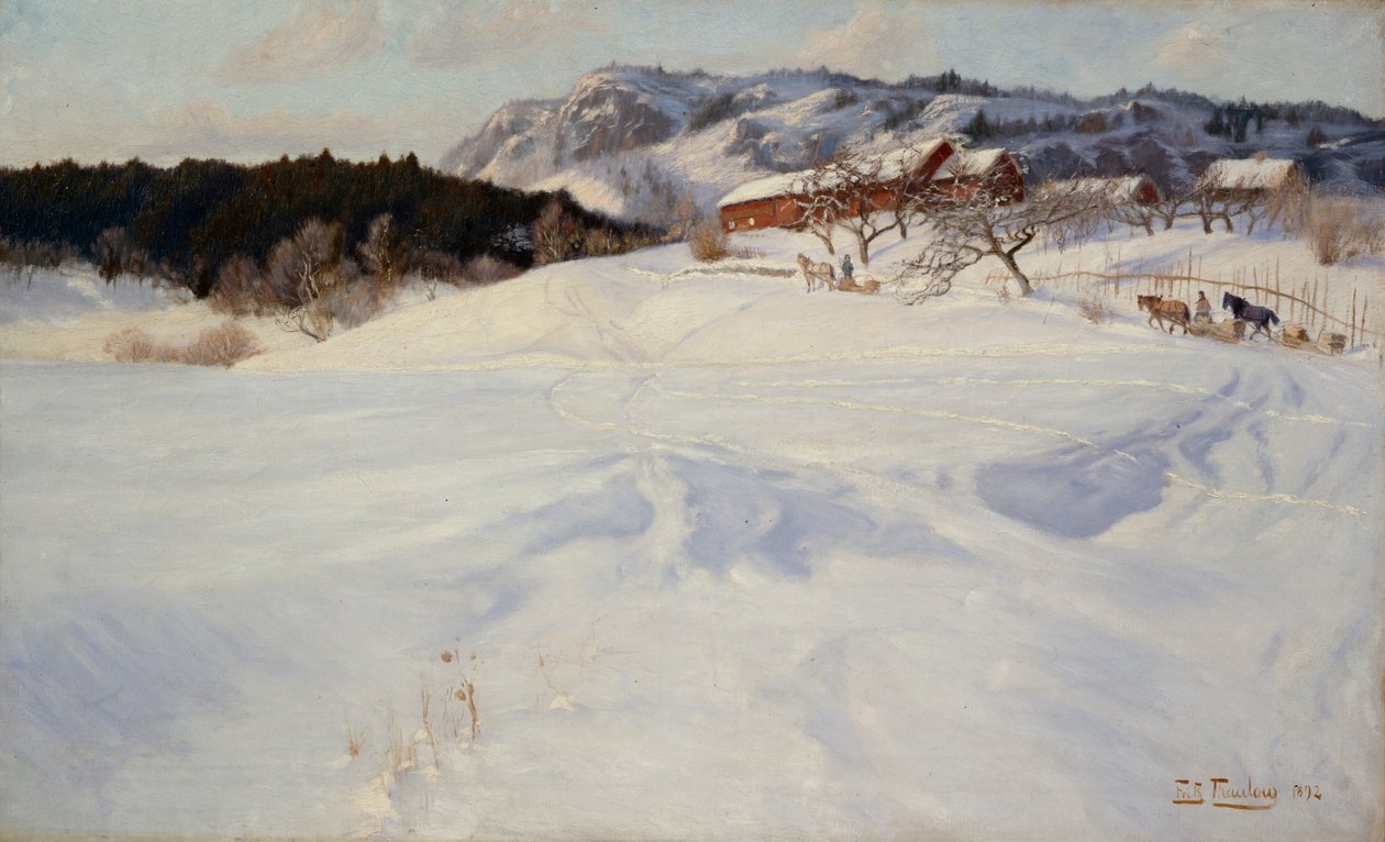 Schneeszene mit Schlitten, Fleksum(Snow scene with sledge, Fleksum)Fritz Thaulow |