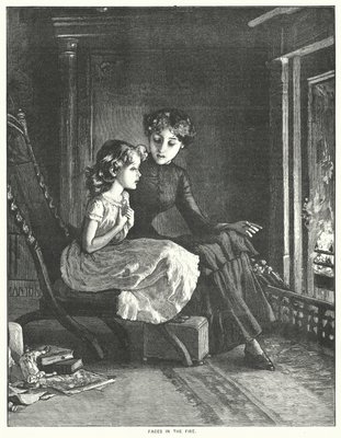 gesichter · feuer · häusliche szenen · kamine · frauen · kinder · mädchen · stühle · Private Collection / Bridgeman Images · / Look and Learn