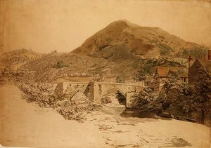 Dorf und Brücke von Llangollen, Nordwales, mit Regenbogeneffekt(Village and Bridge of Llangollen, North Wales, with Rainbow Effect)George the Younger Barret |