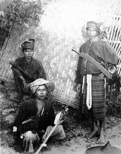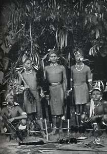Burma: Akha-Männer mit Frauen in ihrer ganzen Pracht(Burma: Akha men with women in all their finery (b/w photo))Georges Bertin Scott |