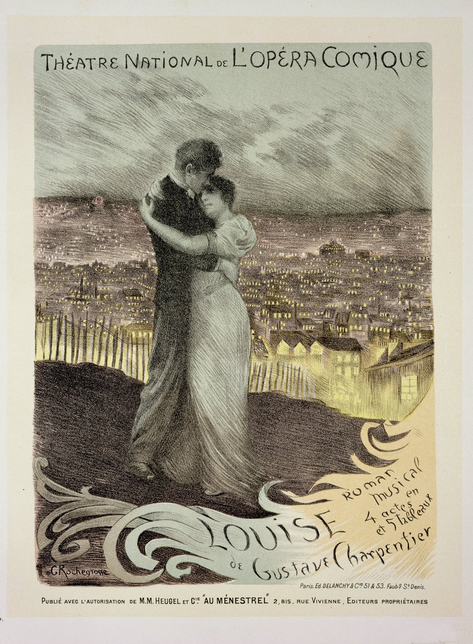Reproduktion eines Plakats, das 'Louise' von Gustave Charpentier im Theatre National de L'Opera Comique, Paris, bewirbt(Reproduction of a poster advertising 'Louise' by Gustave Charpentier, at the Theatre National de L'Opera Comique, Paris )Georges Marie Rochegrosse |