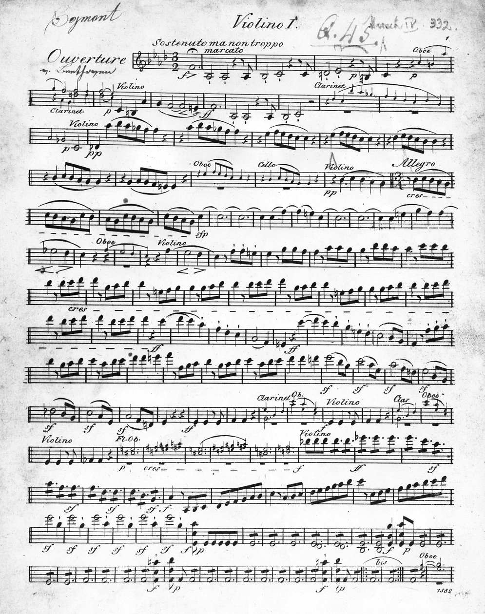 Notenblatt für die Ouvertüre zu 'Egmont' von Ludwig van Beethoven, geschrieben zwischen 1809-10(Sheet Music for the Overture to 'Egmont' by Ludwig van Beethoven, written between 1809-10 (print))German School |