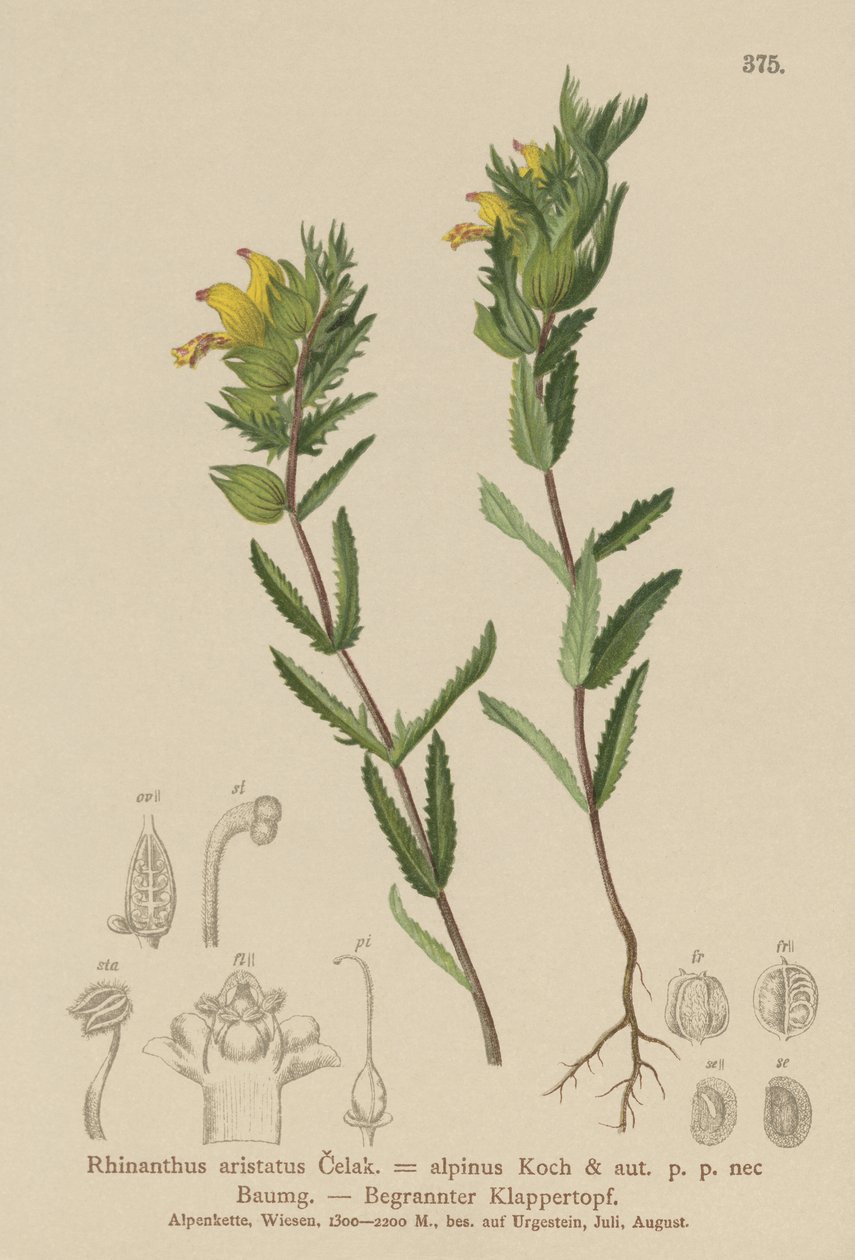 Behaarter Klappertopf (Rhinanthus aristatus, Rhinanthus alpinus)(Hairy Yellow Rattle (Rhinanthus aristatus, Rhinanthus alpinus) )German School |
