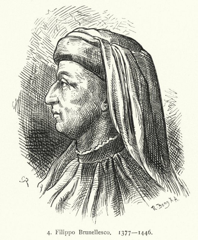 Filippo Brunelleschi, italienischer Architekt und Ingenieur(Filippo Brunellesco, Italian architect and engineer (engraving))German School |