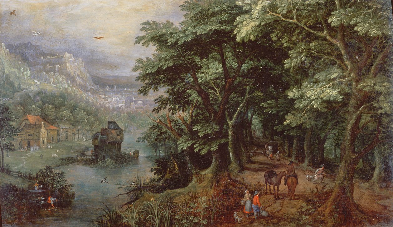 Landschaft mit Figuren in einer Allee, um 1595(Landscape with figures in an avenue, c.1595 (panel))Gillis van III Coninxloo |