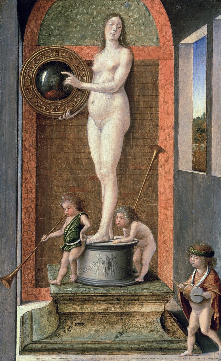 eitelkeit · renaissance · allegorie · spiegel · frau · sockel · cherub · putto · putti · trompete · schlagzeug · nachrestaurierung · 2000 restauriert · Gallerie dell'Accademia, Venice, Italy / Bridgeman Images
