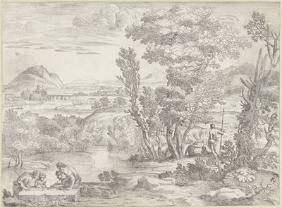 Landschaft mit vier Spielern(Landschap met vier dobbelaars)Giovanni Francesco Grimaldi(print maker),Titiaan |