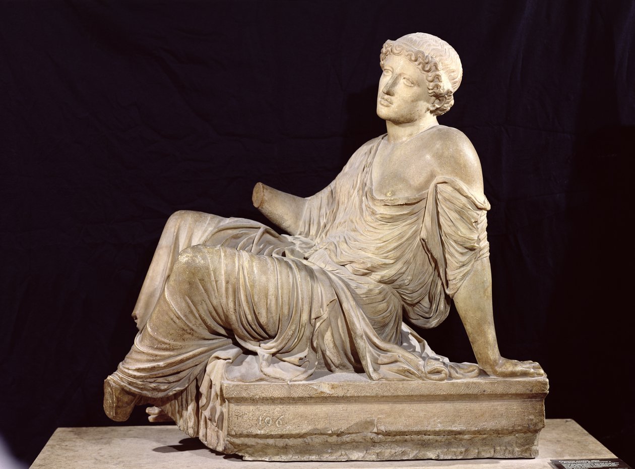 Frau auf einem Altar sitzend, 'Die Bittstellerin Barberini', ca. 440-430 v. Chr. (Marmor)(Woman seated on a altar, 'The Supplicant Barberini', c.440-430 BC (marble))Greek |