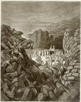 Die Mauern von Jericho fallen von Gustave Dore. Verfügbar als Kunstdruck auf Leinwand, Fotopapier, Aquarellkarton, Naturpapier oder Japanpapier.