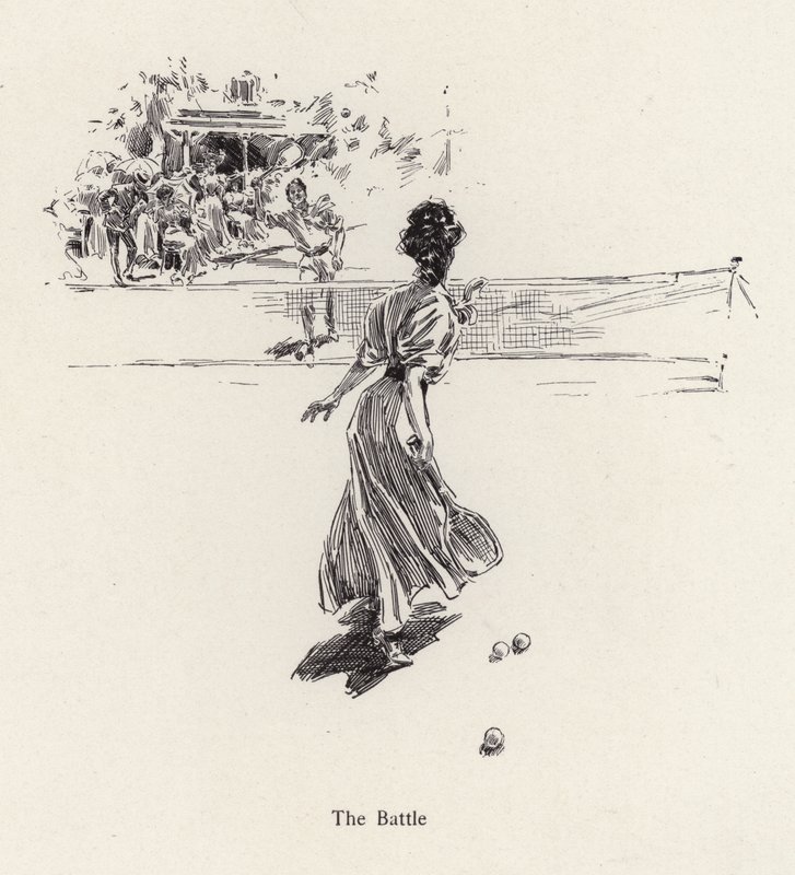 Mann und Frau spielen Tennis(Man and woman playing tennis (litho))Harrison Fisher |
