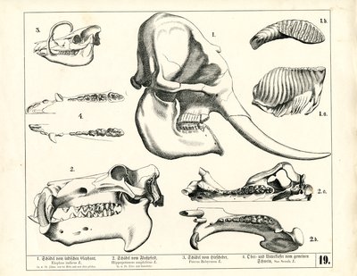Schädel und Gebiss verschiedener Säugetiere(Skulls and Dentition of Various Mammals)Heinrich Leutemann |