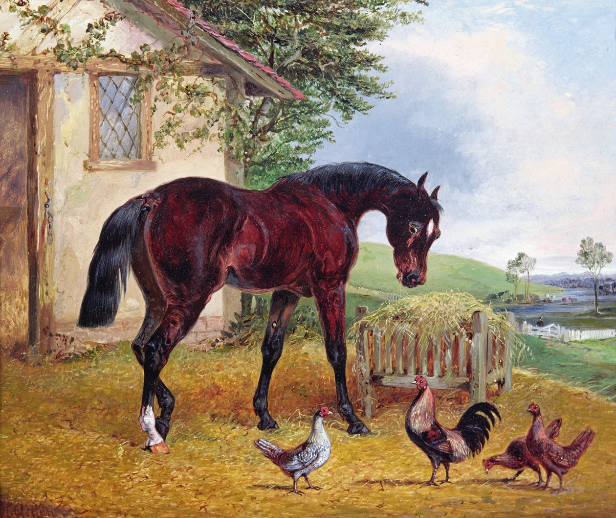 pferd · huhn · hühner · Bauernhof · Messum's, London, UK / Bridgeman Images |