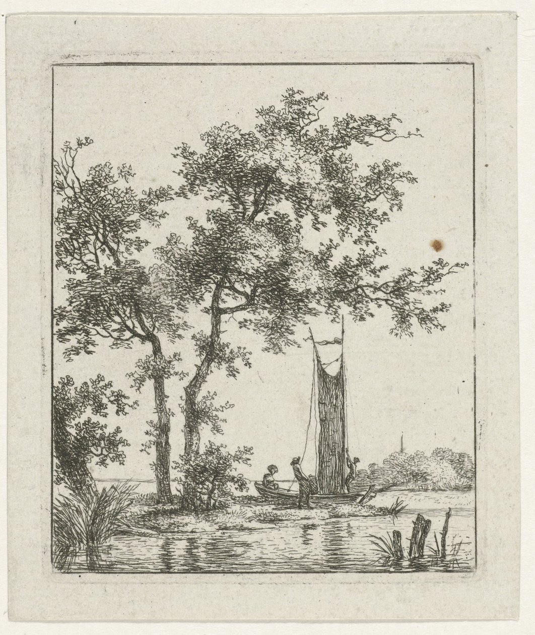 Segel hissen(Heisen van het zeil Schuitje aan de landtong)Hermanus Fock(print maker) |