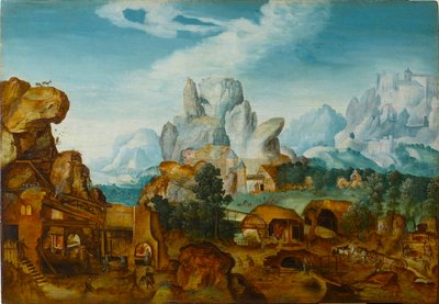 Industrielandschaft mit Mine und Eisenhütte(Industrial landscape with mine and iron forge (oil on wood))Herri met de (c.1510-p.1550) Bles |