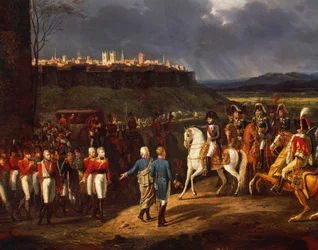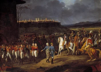französischer kaiser · pferd · gefangener · belagerung · gefangener · gefangennahme · soldaten · truppen · pferd · präsentation · ummauerte stadt · Château de Versailles, France / Bridgeman Images