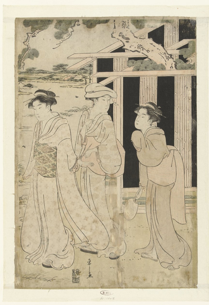 Drei Frauen, die am See spazieren gehen(Drie vrouwen wandelend bij meer)Hosoda Eishi(print maker) |