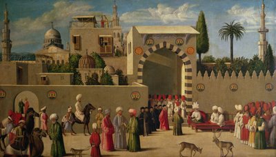 Das Interview des venezianischen Botschafters in einer orientalischen Stadt oder, Der Empfang von Domenico Trevisani in Kairo im Jahr 1512(The Venetian Ambassador's Interview in an Oriental City or, The Reception of Domenico Trevisani in Cairo in 1512 )Italian School |