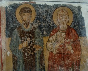 Detail von St. Johannes dem Evangelisten und St. Simon(Detail of St. John the Evangelist and St. Simon )Italian School |