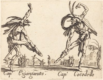 Capitano Esgangarato - Capitano Cocodrillo, Platte 14 aus Balli di Sfessania(Capitano Esgangarato - Capitano Cocodrillo, plate 14 from Balli di Sfessania)Jacques Callot |