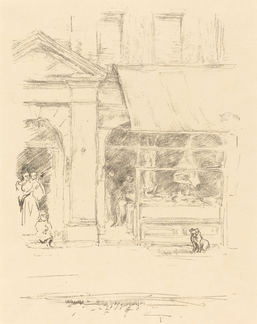 tier · gebäude · frau · frauen · frau · leute · kind · kinder · gruppe · einkaufen · geschäft · geschäfte · künste · land · hund · hunde · fenster · kunst · besetzung · washington · plasterung · bürgersteig · position · jahrhundert · galerie · beruf · druck · metzger · druck · geschäft fenster · kunstgalerie · vereinigte staaten von ameri · 19. jahrhundert · schwarzes u. weiß · schwarzes und weiß · nationale galerie der kunst · lithographie · 19.jahrhundert · amerikanisch · amerika · lithography · lithograph · portrait · butcher's shop · james abbott mcneill whistler · james mcneill whistler · j.a mcneill whistler · ja mcneill whistler · whistler · james abbott mcneill · whistler · james mcneill · james mcneil whistler · art centre · lithotint · gilded age · heritage art · print · james a. mcneill whistler · lithograph in black on wove paper · whistler · james a mcneill · rosenwald collection · j. mcneill whistler · james a mcne · Heritage Art/Heritage Images