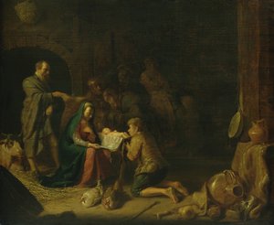 Die Anbetung der Hirten von Jan Havicksz. Steen. Verfügbar als Kunstdruck auf Leinwand, Fotopapier, Aquarellkarton, Naturpapier oder Japanpapier.
