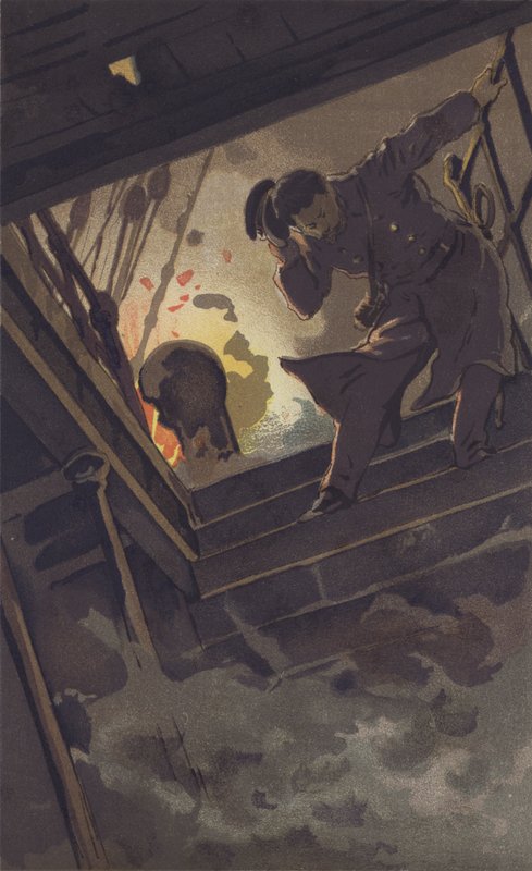 Kommandant Hirose durchsucht Warrant-Officer Sugino(Commander Hirose searching Warrant-Officer Sugino (chromolitho))Japanese School |