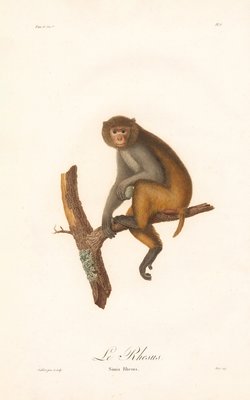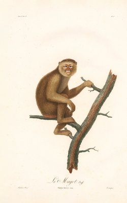 Berberaffe (Simia inuus) von Jean Baptiste Audebert. Verfügbar als Kunstdruck auf Leinwand, Fotopapier, Aquarellkarton, Naturpapier oder Japanpapier.