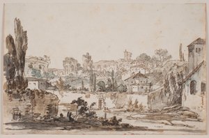 Stadtansicht mit Häusern und Mauer am Fluss; im Hintergrund Kirchen und Paläste Stadtansicht mit Palast und Kirche umgeben von Mauer Stadtansicht mit Häusern und Kirche am Fluss. Antikes Rom Stadtansicht mit Ruinen und hochgelegener Kirche und Palast Prospekt mit Festung (?), Ruinen, Felsen und Wasser Römische Aussicht mit Stadtmauer und Kirchen Römische Aussicht mit Mauer im Vordergrund, Kirche und Ruine im Hintergrund Szene am Fuß des Palatin, Rom Aussicht mit Ruinen und Häusern am Wasserlauf Flussufer mit orientalischer Stadt Prospekt mit Ruinen, antikes Rom Ein befestigtes Dorf an einem Fluss Ansicht von Civitavecchia mit der Hafenmauer Capriccio mit u.a. Ponte Rotto. Rom Entraigues Stadtansicht mit einem Aquädukt (Südeuropäische Landschaften) Landschaft mit großen, imposanten Gebäuden Ansicht des Pincio von Südosten, Rom Prospekt mit Palast umgeben von Bäumen und Felsen Prospekt mit hohen Bäumen, Gebäuden und Ruinen Ansicht einer italienischen Stadt Ansicht der Engelsburg und des Ospedale di Santo Spirito [recto] Küstenansicht mit einem Schiff, das rechts kalfatert wird (Entwürfe für eine Druckserie mit Küstenlandschaften) Von der Stadt Avignon und darüber hinaus: Ansicht der Stadt Avignon und der Umgebung Eine Insel in der Lagune "Römische" Aussicht Panoramablick auf Segovia von Osten Zeichnung, Bühnenbild, Blick auf Stadt und Hafen, frühes 18. Jahrhundert Landschaft mit Stadt in der Ferne