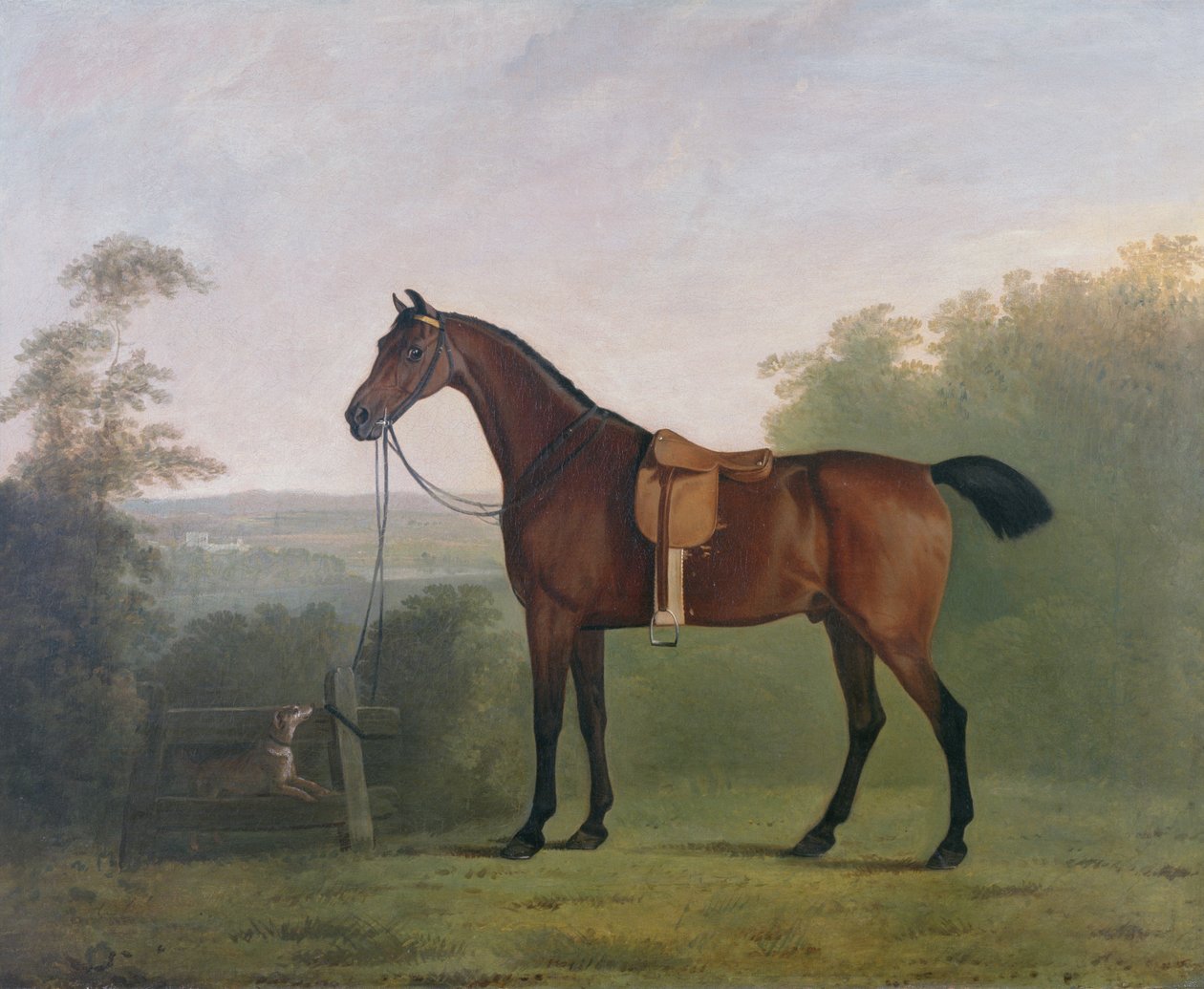 Ein brauner Jäger in einer Landschaft(A Bay Hunter in a Landscape)John Boultbee |