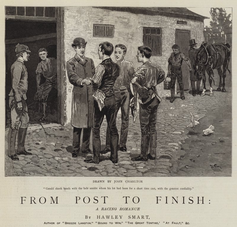 von der post · fertig · racing romance · hawley smart · gerald · schüttelte · hände · jungs · inmitten · kurz · zeit · besetzung · Private Collection / Bridgeman Images · / Look and Learn |