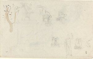 Studien von klassischen Tempelfassaden und sitzender weiblicher Figur [verso](Studies of Classical Temple Facades and Seated Female Figure [verso])John William Casilear |