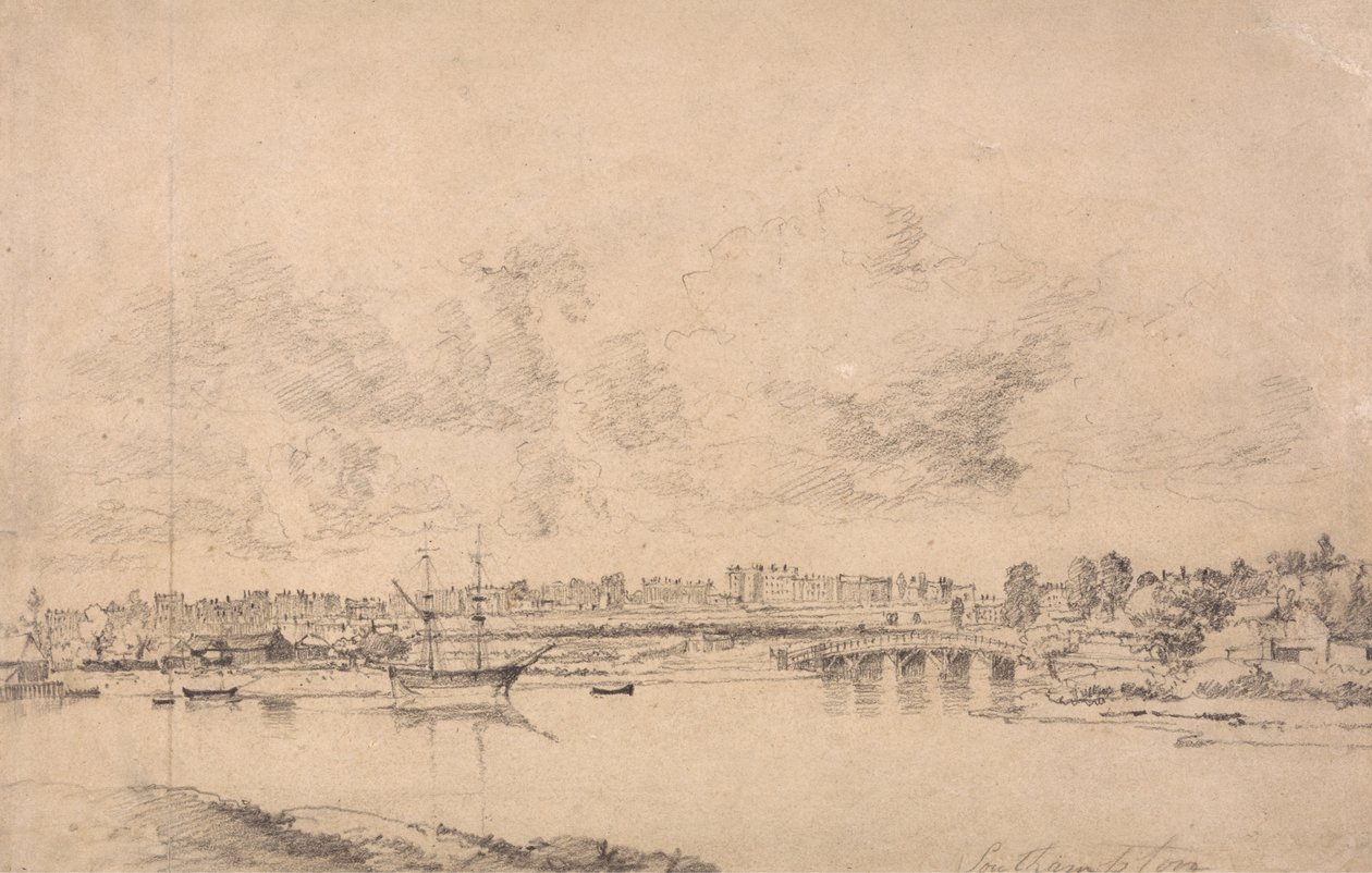 zeichnung · wolken · landschaft · fluss · brücke · boote · gebäude · friedlich · einfarbig · southampton · northam · Fluss · Itchen