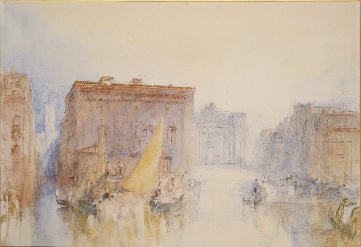 transport · transport · außen · draußen · italien · italienisch · leute · mann · beschäftigt · mann · männer · segeln · boot · boote · gelb · künste · land · kunst · kerl · romantisch · britisch · museum · farbe · farbe · braun · venedig · veneto · gondel · großartiger kanal · position · jahrhundert · galerie · großbritannien · segel · fassade · konzept · draußen · romanticism · errichtendes äußeres · watercolour · kunstgalerie · 19. jahrhundert · wassertransport · dorsoduro · façade · 19.jahrhundert · copyspace · accademia · landscape · jmw turner · j m w turner · turner · joseph mallord william · romantic era · joseph mallord william turner · joseph turner · art centre · bodycolour · gallerie dell'accademia · gallery of the accademia · ashmolean museum · Ashmolean Museum, University of Oxford/Heritage Images