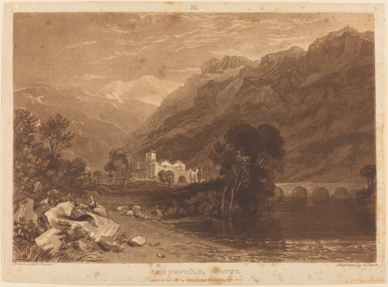 fluß · szenisch · frau · frauen · frau · leute · mann · mann · männer · stadt · künste · felsen · felsen · berg · berge · land · französisch · frankreich · kunst · kerl · romantisch · brücke · brücken · ansicht · britisch · geographie · lügen · farbe · washington · struktur · landschaft · position · jahrhundert · galerie · großbritannien · sepia · druck · konzept · riverbank · romanticism · haute-savoie · kunstgalerie · bonneville · farbe · 19. jahrhundert · schwarzes u. weiß · schwarzes und weiß · hintergrundleute · nationale galerie der kunst · 19.jahrhundert · etching · landscape · jmw turner · j m w turner · turner · joseph mallord william · romantic era · joseph mallord william turner · joseph turner · art centre · turner jmw · heritage art · print · etching and mezzotint · Heritage Art/Heritage Images