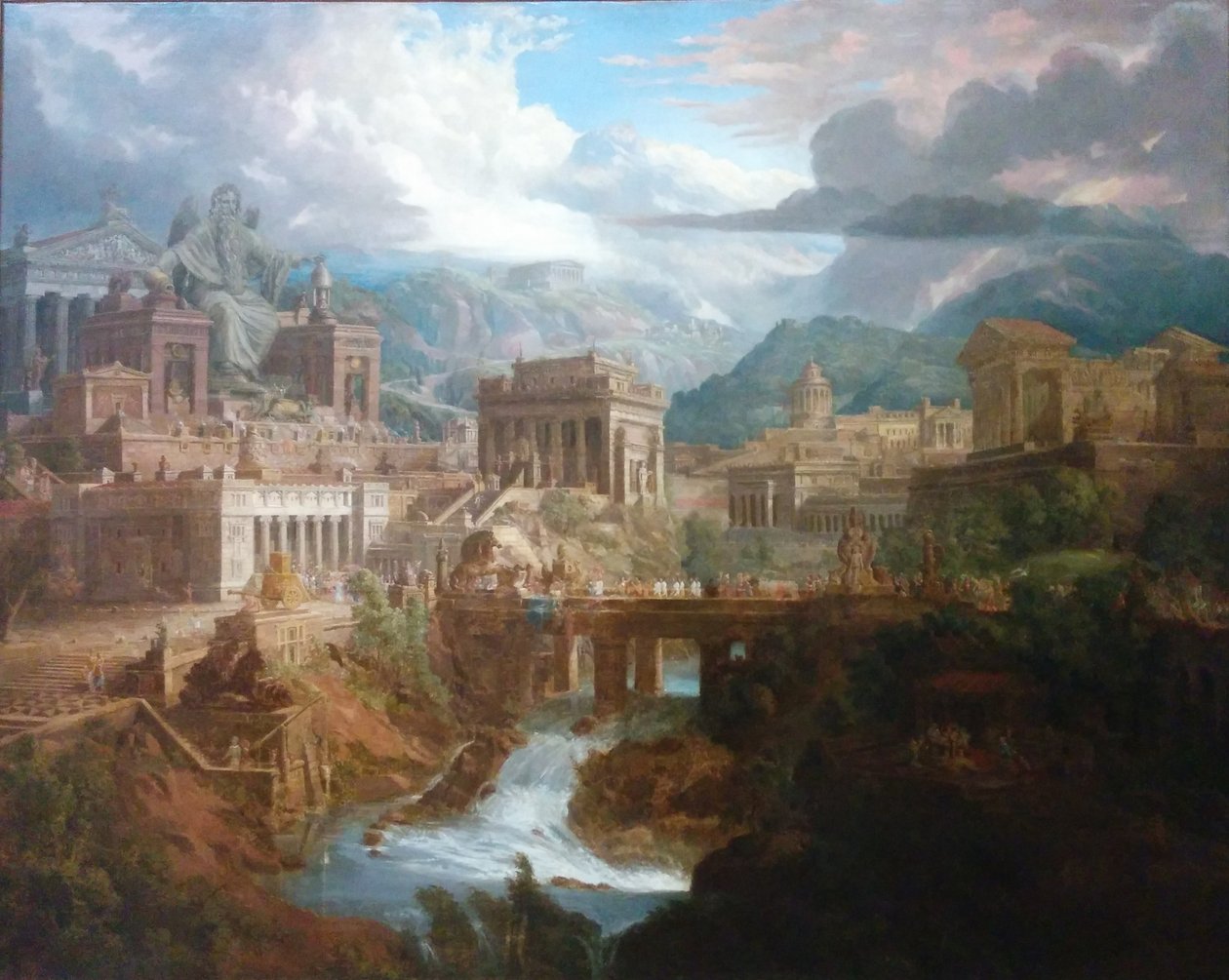 Kolossale Statue des Zeus in der antiken griechischen Stadt Lebadeia(Colossal statue of Zeus in the ancient Greek city of Lebadeia)Joseph Michael Gandy |