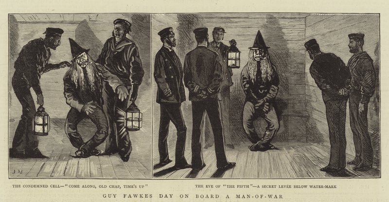 Guy Fawkes Tag an Bord eines Kriegsschiffs von Joseph Nash