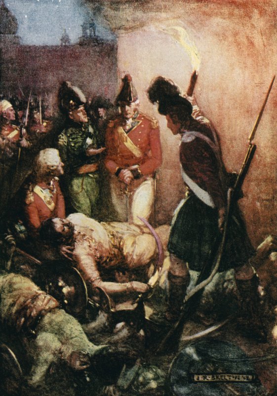 britisches imperium · geschichte · historisch · abenteuer · geschichten · kolonialismus · indisch · indien · kommandant · führer · krieg · krieg · getötet · körper · tipu sultan · tippoo sultan · 18. jahrhundert · entdeckung · vierter anglo-mysore-krieg · belagerung von seringapatnam · britisch · Private Collection / Bridgeman Images · / Look and Learn |