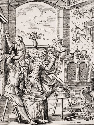 Goldschmied, Reproduktion eines Holzschnitts aus dem 16. Jahrhundert von Jost Amman(Goldsmith, reproduction of 16th century woodcut by Jost Amman)Jost (after) Amman |