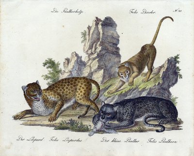 Der Pantherkatze mit Leopard und kleinem Panther(The Panther Cat with Leopard and small Panther (print))Karl Joseph Brodtmann |