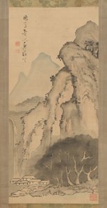 Wasserfall, Adler und Affe, ca. 1887(Waterfall, Eagle and Monkey, ca. 1887. )Kawanabe Kyosai |