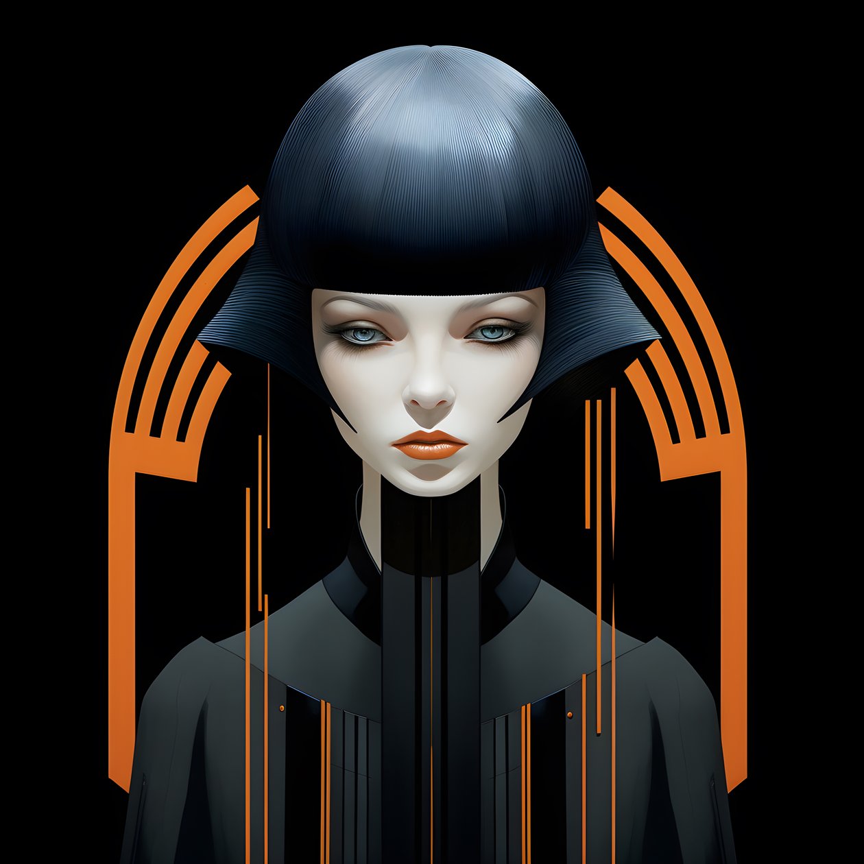 Dieses Bild wurde mit Hilfe von generativer KI erstellt. 2023 · Digital Art - Computermade 3d - midjourney - Photoshop · Bild ID: 1469427 im Stil von George Barbier und Pierre Soulages, Sci-Fi-Motive, Hyperrealismus, Minimalismus