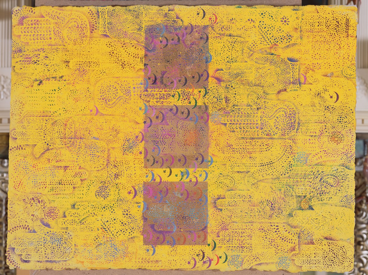 Ohne Titel(Untitled, 1999 (acrylic & gold leaf on paper))Laila Shawa |