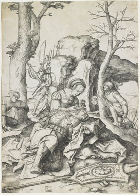 Simson und Delila(Simson en Delila)Lucas van Leyden(print maker),Lucas van Leyden(after own design by) |