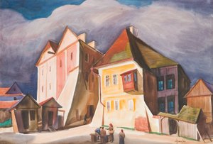abend · abendrot · alltag · architektur · architekturdarstellung · beutel · dämmerung · blaue · reiter · grosse · bär · einkauf · einkaufskorb · expressionismus · frau · frauenkunst · frauenleben · fussgängerin · fussreise · haus · heimkehr · heimweg · korb · kunst · laterne · licht · beleuchtung · mensch · russische · kunst · sonnenuntergang · stadt · stadtleben · strasse · allgemein · strassenbeleuchtung · strassenlaterne · strassenszene · tageszeiten · tasche · tragen · wohnhaus · allgemein · technik · gemälde · malerei · tempera · tempera · auf · papier · Heimkehr · Ascona, Fondazione Marianne Werefkin / akg-images |